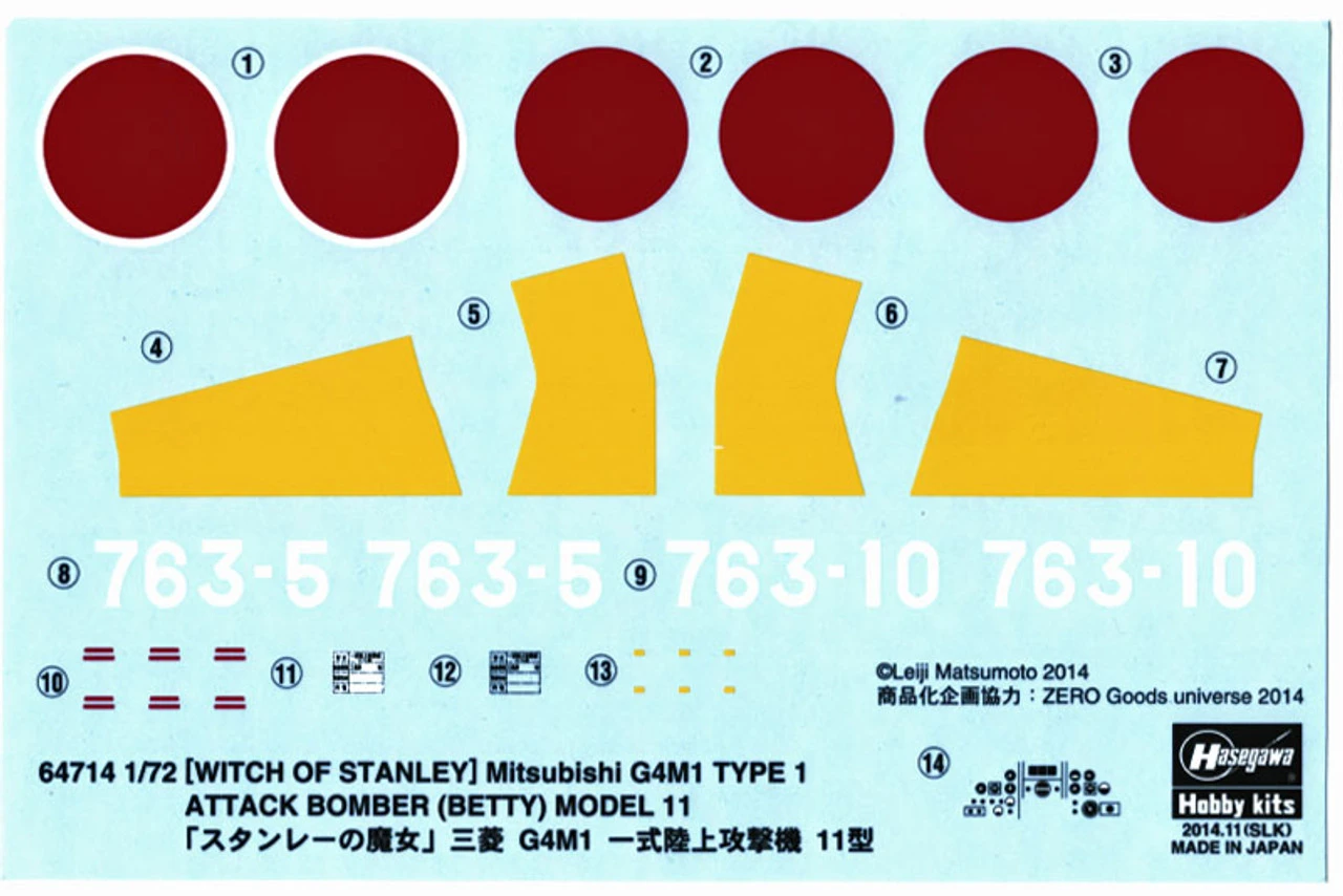 Hasegawa 64714 The Cockpit “Witch of Stanley” Mitsubishi G4M1 Type 1 Attach Bomber (Betty) Model 11 1/72 scale kitÂ