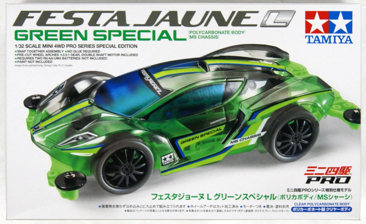 Tamiya 95485 Mini 4WD Festa Jaune L Green SP Polycarbonate Body MS Chassis 1/32